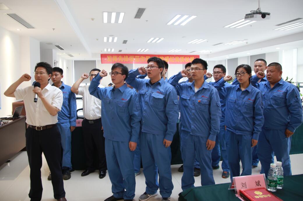 會(huì )上,今年新發(fā)展黨員在盛虹石化集團黨委委員、虹港石化總經(jīng)理梁朝科的帶領(lǐng)下,面向黨旗莊嚴宣誓,光榮加入黨組織。