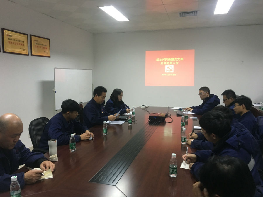 在斯爾邦第一黨支部,支部書(shū)記程恩慧在傳達市委相關(guān)會(huì )議精神的同時(shí),帶領(lǐng)黨員們重溫入黨誓詞并集中觀(guān)看了公司宣傳視頻,大家圍繞本職工作,就如何發(fā)揮好先鋒模范作用、助力企業(yè)發(fā)展進(jìn)行了深入交流。