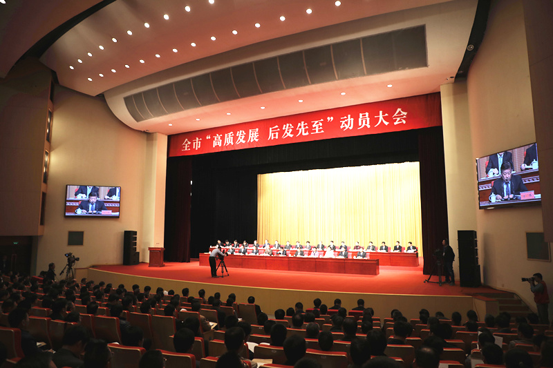 會(huì )議由連云港市委副書(shū)記、代市長(cháng)方偉主持,市委書(shū)記項雪龍發(fā)表重要講話(huà)。項雪龍指出,“高質(zhì)發(fā)展、后發(fā)先至”,是連云港市委、市政府立足市情實(shí)際,著(zhù)眼連云港長(cháng)遠發(fā)展,作出的一項重大決策部署。今天的動(dòng)員大會(huì ),規模之大、規格之高,既體現了市委、市政府對這項工作的高度重視,也充分表明了推動(dòng)“高質(zhì)發(fā)展、后發(fā)先至”的堅定決心。大家要以黨的十九大精神為指引,牢記習近平總書(shū)記“后發(fā)先至”的殷殷囑托,認真落實(shí)中央和省委高質(zhì)量發(fā)展的部署要求,進(jìn)一步認清形勢、振奮精神、頑強拼搏、負重奮進(jìn),全面開(kāi)啟“高質(zhì)發(fā)展、后發(fā)先至”新征程。